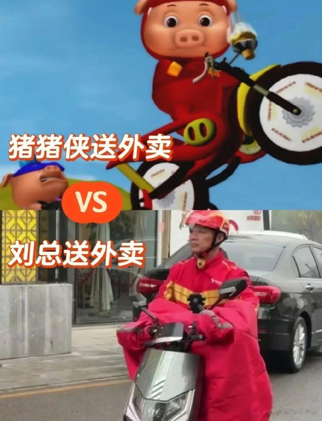 这场“猪猪侠狂欢”,其实从起源就充满了戏剧性。前段时间,京东正式宣布进军外卖行业。然后某一天,一名网友突然发现给自己送餐的人竟然是刘强东本人,于是刘强东身穿京东外卖工服送餐的照片一时之间火爆网络。毕竟谁能想到千万身价的总裁会亲自体验送外卖呢?本以为故事到这里要开始走温情路线了,突然画风一转,有才的网友发现东哥的造型与国产动画《猪猪侠》主角一模一样,甚至连配色都一样。于是网友纷纷开始p图玩梗,那憨厚的神态简直像猪猪侠转世。
